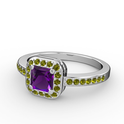 Ametist ve peridot 8 ayar beyaz altın yüzük