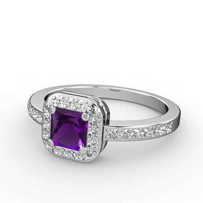 Ametist ve pırlanta 8 ayar beyaz altın yüzük (0.45 karat)