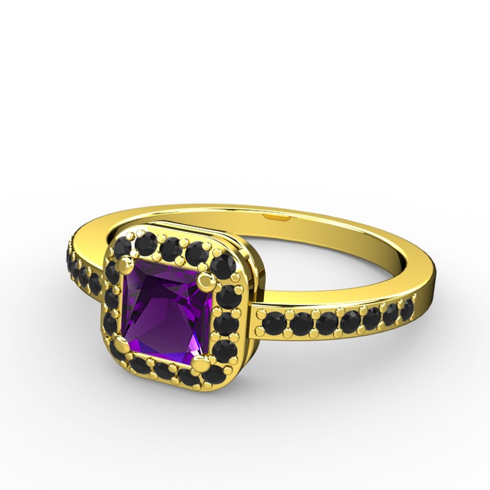 Ametist ve siyah zirkon 8 ayar altın yüzük