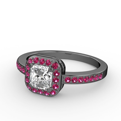 Beyaz zirkon ve rodolit garnet 925 ayar siyah rodyum kaplama gümüş yüzük