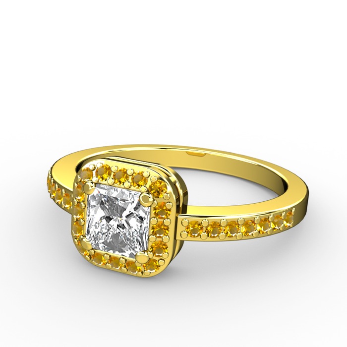 Beyaz zirkon ve sitrin 18 ayar altın yüzük