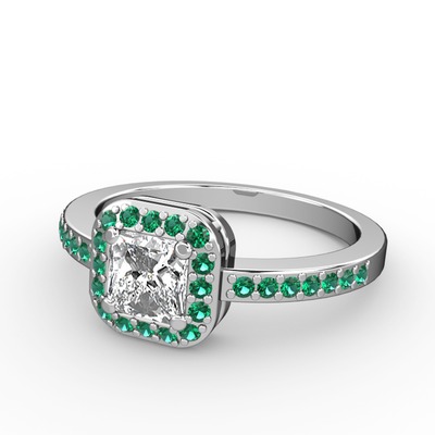 Beyaz zirkon ve yeşil kuvars 14 ayar beyaz altın yüzük
