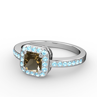 Dumanlı kuvars ve akuamarin 8 ayar beyaz altın yüzük