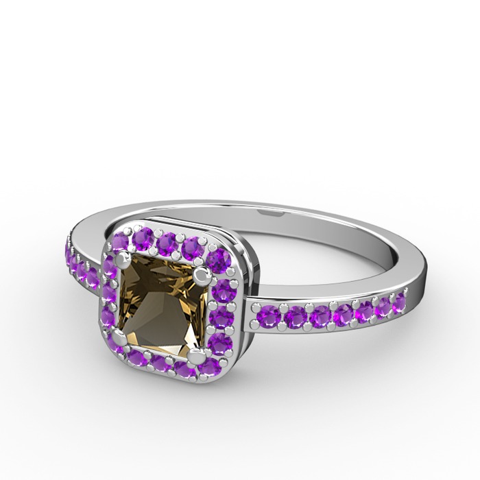 Dumanlı kuvars ve ametist 925 ayar gümüş yüzük