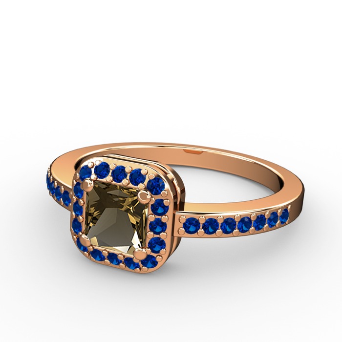 Dumanlı kuvars ve lab safir 18 ayar rose altın yüzük