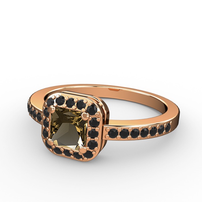 Dumanlı kuvars ve siyah zirkon 14 ayar rose altın yüzük