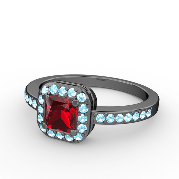 Garnet ve akuamarin 925 ayar siyah rodyum kaplama gümüş yüzük