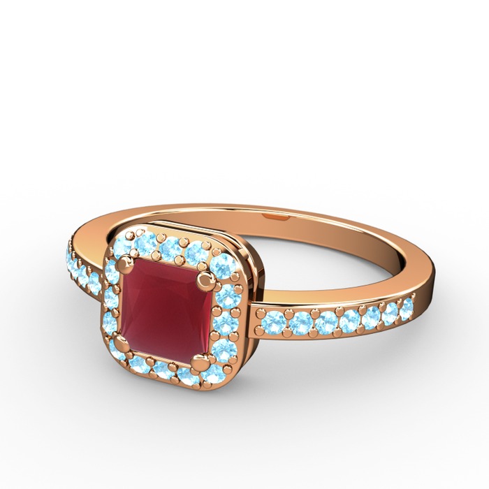 Kök yakut ve akuamarin 925 ayar rose altın kaplama gümüş yüzük