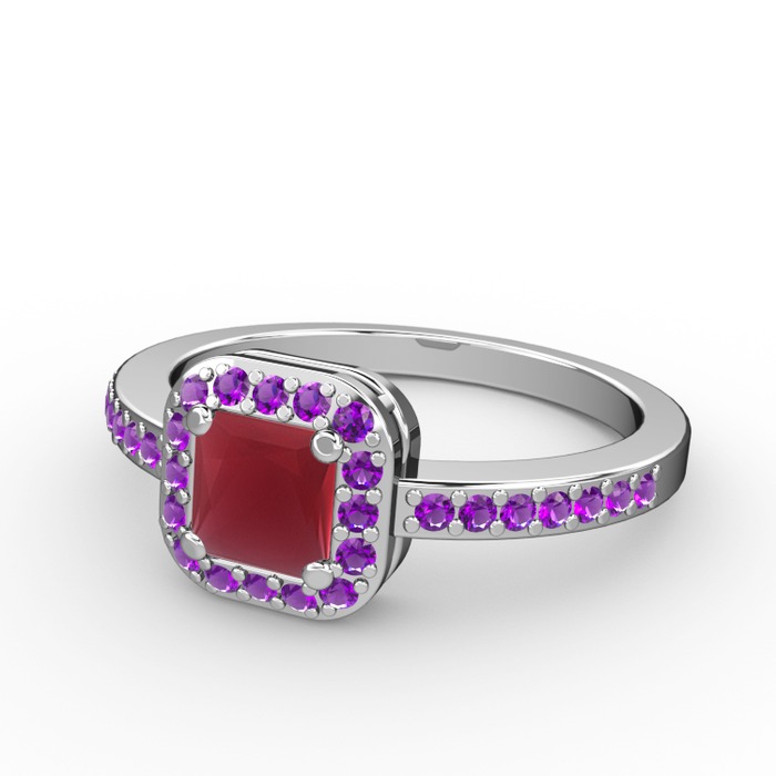 Kök yakut ve ametist 8 ayar beyaz altın yüzük