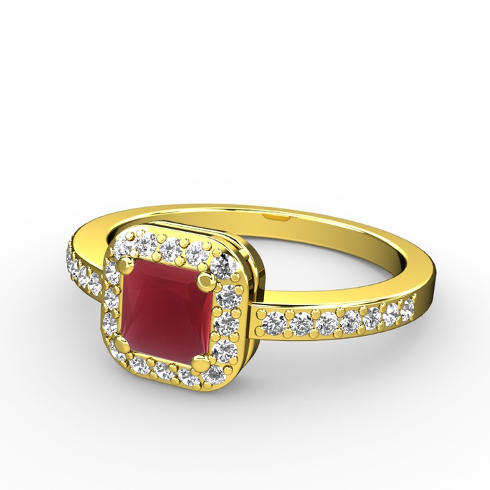 Kök yakut ve pırlanta 925 ayar altın kaplama gümüş yüzük (0.45 karat)