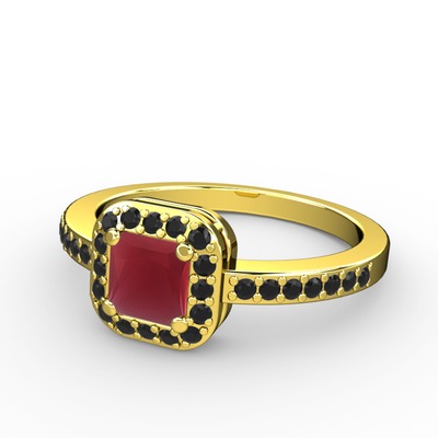 Kök yakut ve siyah zirkon 18 ayar altın yüzük