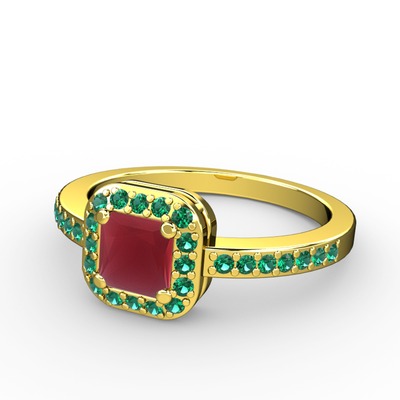 Kök yakut ve yeşil kuvars 18 ayar altın yüzük