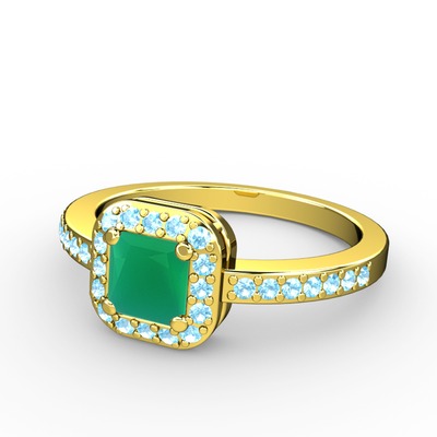 Kök zümrüt ve akuamarin 8 ayar altın yüzük