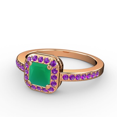 Kök zümrüt ve ametist 18 ayar rose altın yüzük