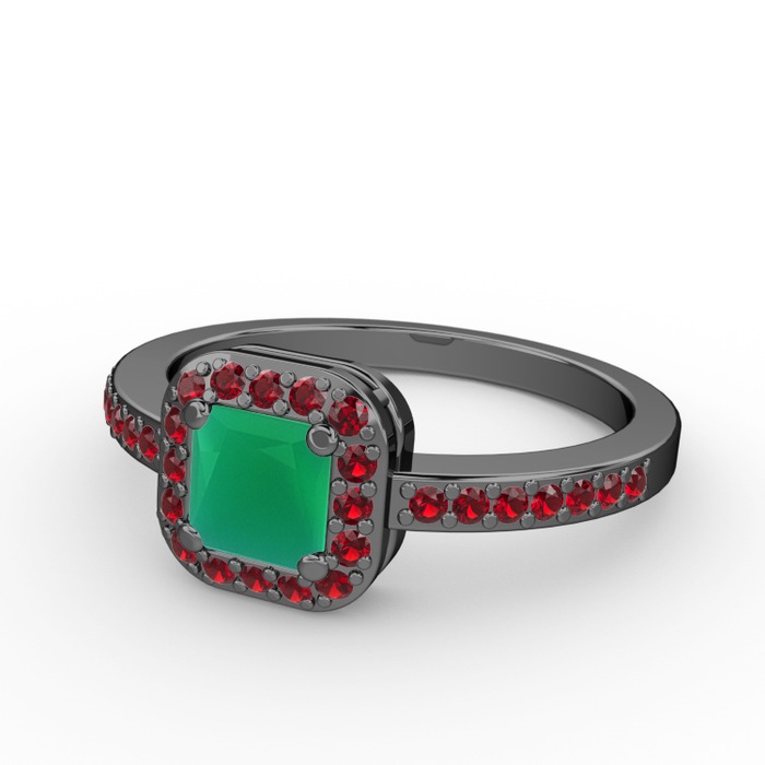 Kök zümrüt ve garnet 925 ayar siyah rodyum kaplama gümüş yüzük