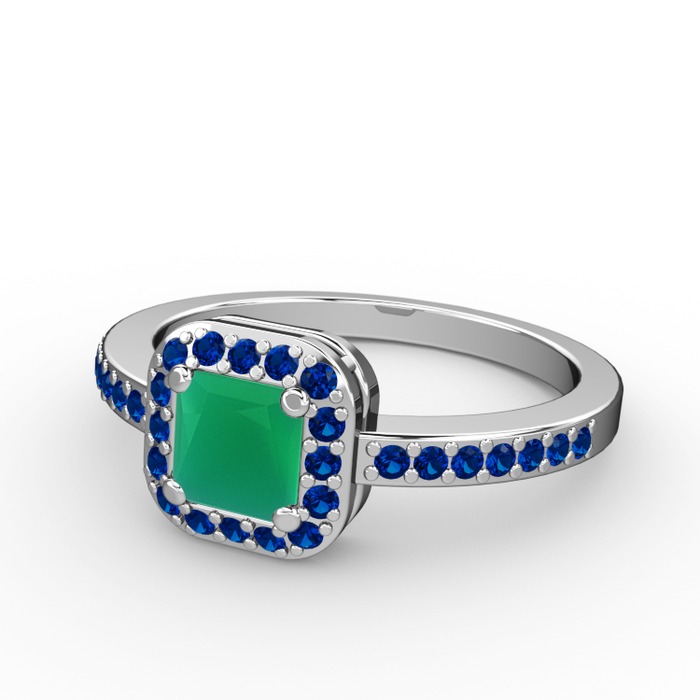 Kök zümrüt ve lab safir 8 ayar beyaz altın yüzük