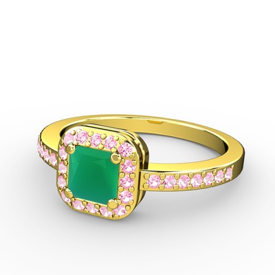 Kök zümrüt ve pembe kuvars 8 ayar altın yüzük