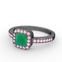 Kök zümrüt ve pembe kuvars 925 ayar siyah rodyum kaplama gümüş yüzük