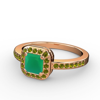 Kök zümrüt ve peridot 8 ayar rose altın yüzük