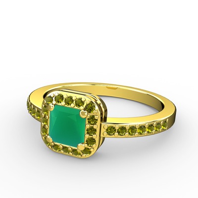 Kök zümrüt ve peridot 925 ayar altın kaplama gümüş yüzük