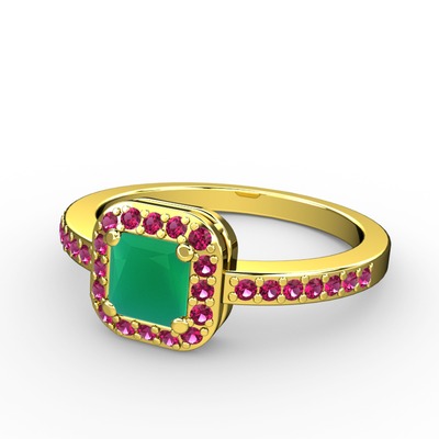 Kök zümrüt ve rodolit garnet 18 ayar altın yüzük