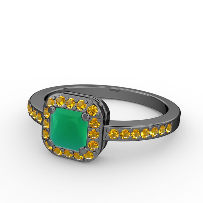 Kök zümrüt ve sitrin 925 ayar siyah rodyum kaplama gümüş yüzük