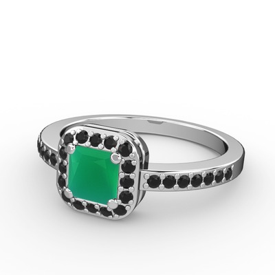 Kök zümrüt ve siyah zirkon 925 ayar gümüş yüzük