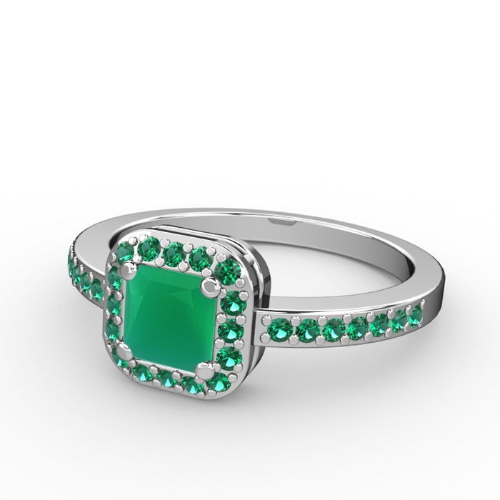 Kök zümrüt ve yeşil kuvars 8 ayar beyaz altın yüzük