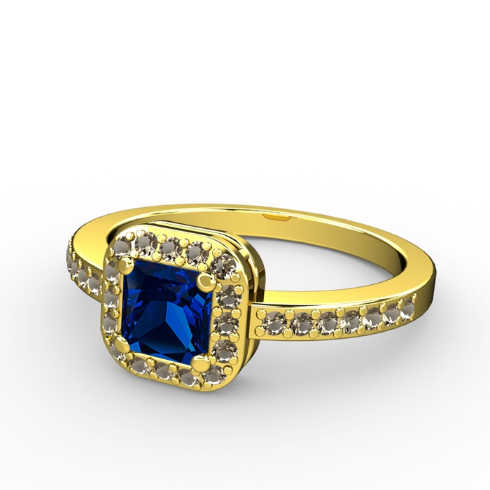 Lab safir ve dumanlı kuvars 18 ayar altın yüzük