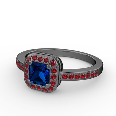 Lab safir ve garnet 925 ayar siyah rodyum kaplama gümüş yüzük