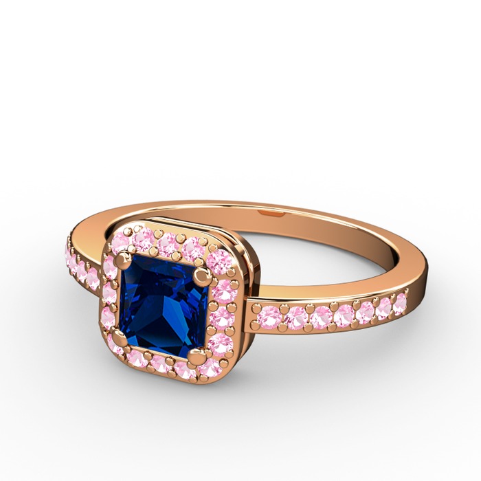 Lab safir ve pembe kuvars 18 ayar rose altın yüzük