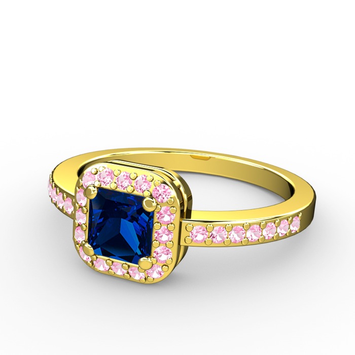 Lab safir ve pembe kuvars 8 ayar altın yüzük