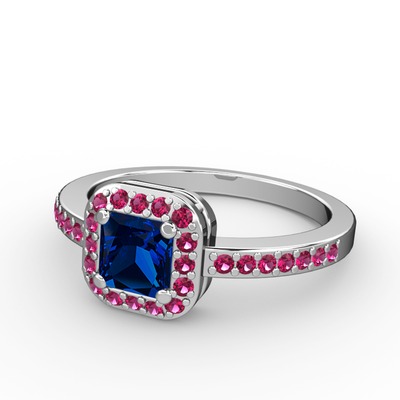 Lab safir ve rodolit garnet 14 ayar beyaz altın yüzük