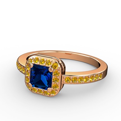 Lab safir ve sitrin 8 ayar rose altın yüzük