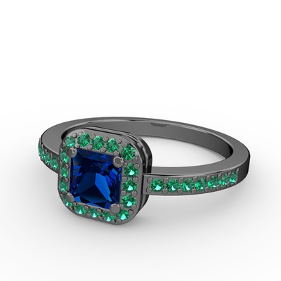 Lab safir ve yeşil kuvars 925 ayar siyah rodyum kaplama gümüş yüzük