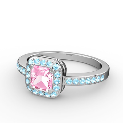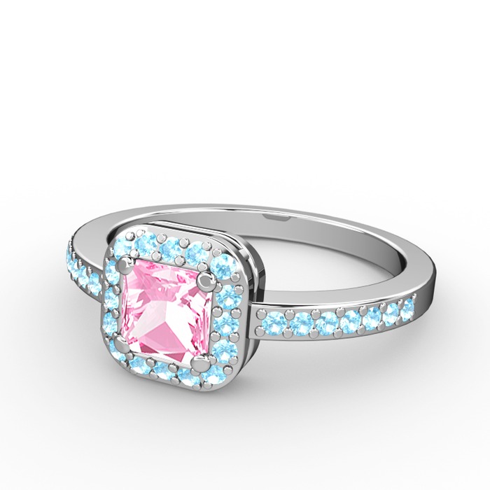 Pembe kuvars ve akuamarin 18 ayar beyaz altın yüzük