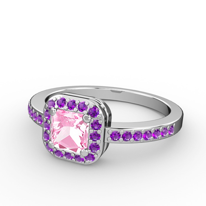 Pembe kuvars ve ametist 18 ayar beyaz altın yüzük