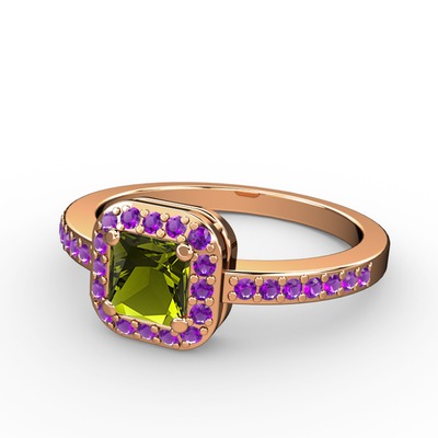 Peridot ve ametist 925 ayar rose altın kaplama gümüş yüzük