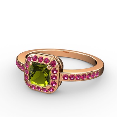 Peridot ve rodolit garnet 18 ayar rose altın yüzük
