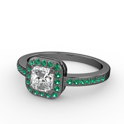 Pırlanta ve yeşil kuvars 925 ayar siyah rodyum kaplama gümüş yüzük (0.71 karat)