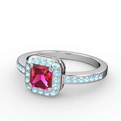 Rodolit garnet ve akuamarin 18 ayar beyaz altın yüzük
