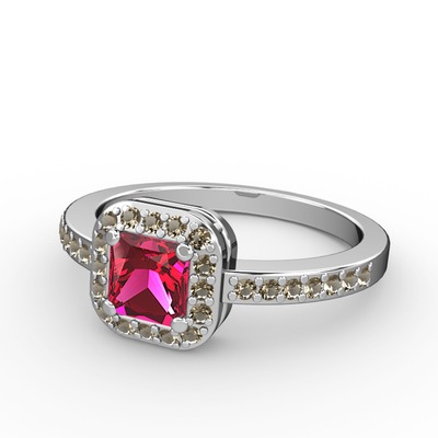 Rodolit garnet ve dumanlı kuvars 8 ayar beyaz altın yüzük