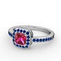 Rodolit garnet ve lab safir 14 ayar beyaz altın yüzük