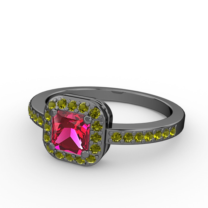 Rodolit garnet ve peridot 925 ayar siyah rodyum kaplama gümüş yüzük