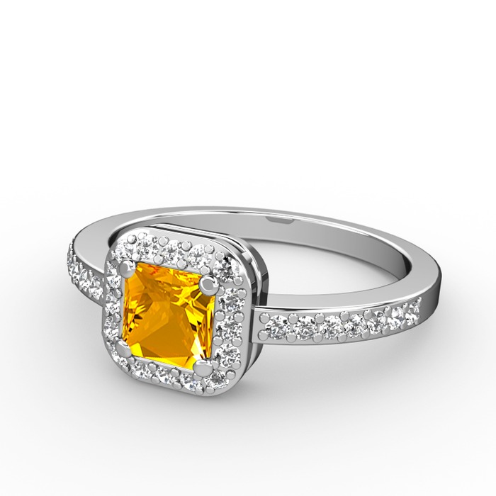 Sitrin ve beyaz zirkon 925 ayar gümüş yüzük