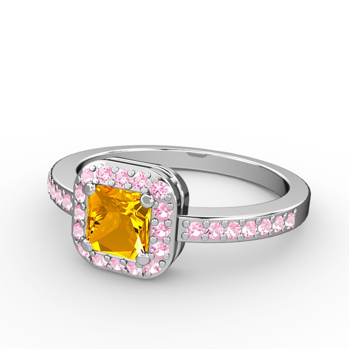 Sitrin ve pembe kuvars 14 ayar beyaz altın yüzük
