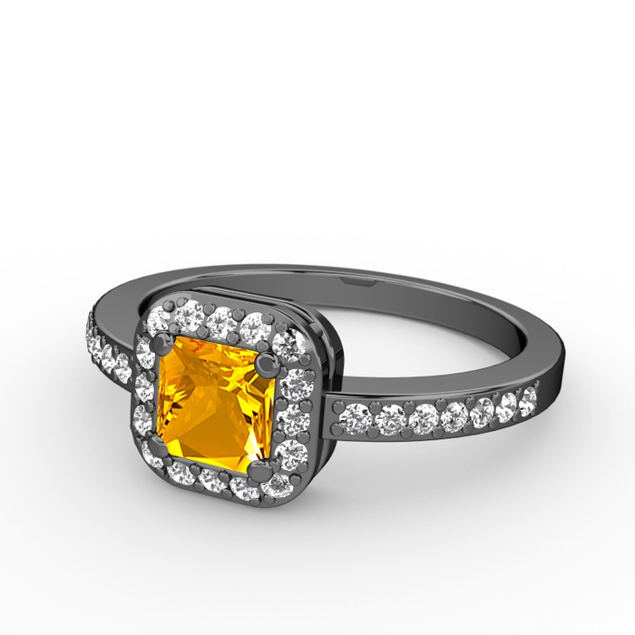 Sitrin ve pırlanta 925 ayar siyah rodyum kaplama gümüş yüzük (0.45 karat)