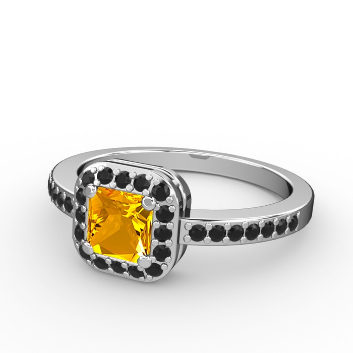 Sitrin ve siyah zirkon 14 ayar beyaz altın yüzük