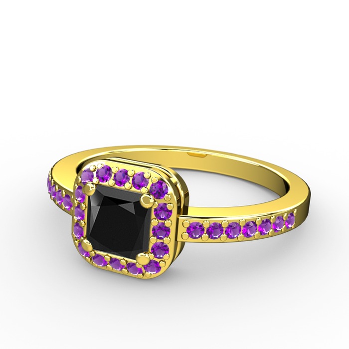 Siyah zirkon ve ametist 8 ayar altın yüzük