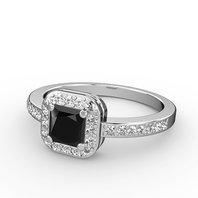 Siyah zirkon ve beyaz zirkon 8 ayar beyaz altın yüzük